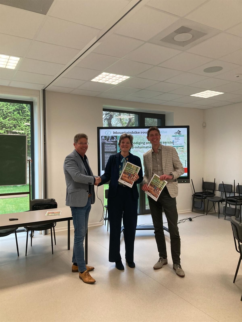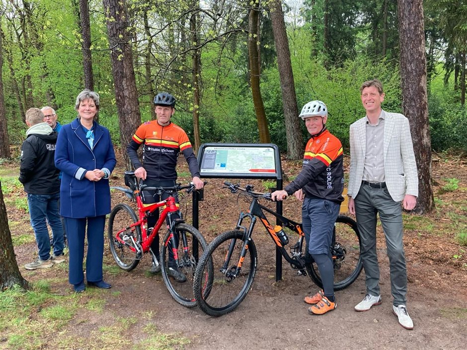 Donderdag 24 april hebben de gedeputeerde Willemien Meeuwissen (provincie Drenthe) en Richard Heling (bestuurslid van Recreatieschap Drenthe en wethouder gemeente Aa en Hunze) de herijkte MTB-visie in ontvangst genomen bij de MTB-route in Rolde, waarna ze het startschot gaven voor de plaatsing van 28 informatiepanelen bij mountainbike- en gravelroutes in Drenthe en het Drents-Friese Wold.