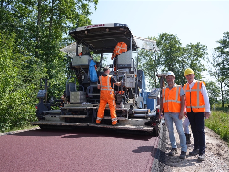 Gedeputeerde Henk Jumelet: “Bijzonder aan dit project is dat alle werkzaamheden zero-emissie worden uitgevoerd. De provincie kiest voor deze aanpak om uitstoot te reduceren en de markt uit te dagen om te innoveren. Dat dit gebeurt op de doorfietsroute De Groene As is mooi. Als fietsprovincie willen we veilige fietspaden en doorfietsroutes. Fietsen in Drenthe is niet alleen gezond en duurzaam, maar ook dé manier om de unieke natuur, cultuur en evenementen te beleven.”