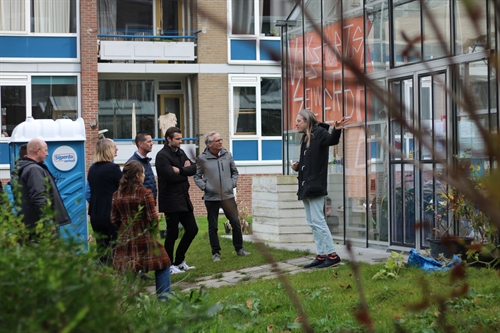 Het bezoek stond in het teken van de sociale kant van de warmtetransitie. De deelnemers gingen in gesprek met bewoners, WarmteStad Groningen, de energiecoöperatie Grunneger Power en woningcorporatie Patrimonium over hun ervaringen met de aanleg en het gebruik van een warmtenet.