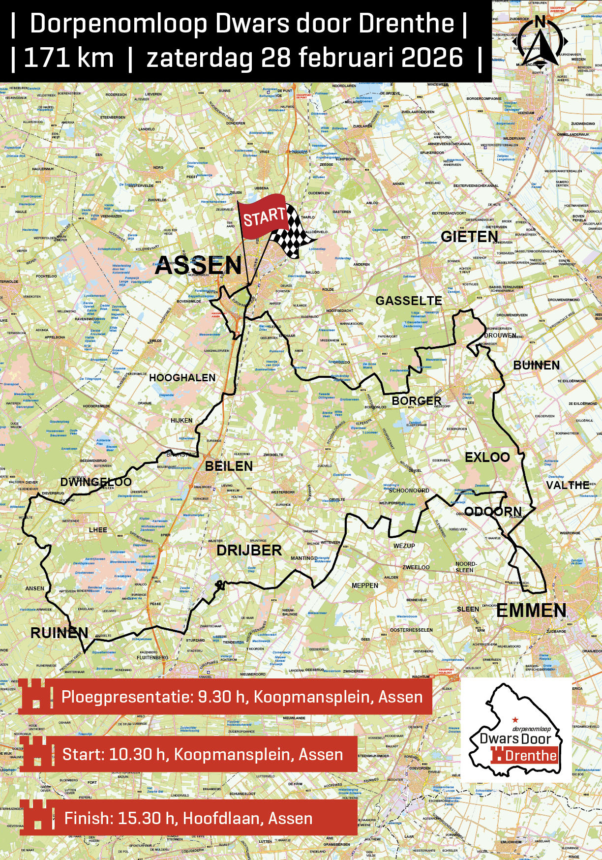 Dwars Door Drenthe opent ook in 2026 het Nederlandse wegseizoen. Net als vorig jaar start de wedstrijd in Assen, maar dit keer is Assen ook de aankomstlocatie van deze op zaterdag 28 februari verreden wielerklassieker.